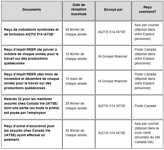 Reçu d'impôt REER pour le travail effectué sur des productions américaines : informations ici (reçu par la poste)